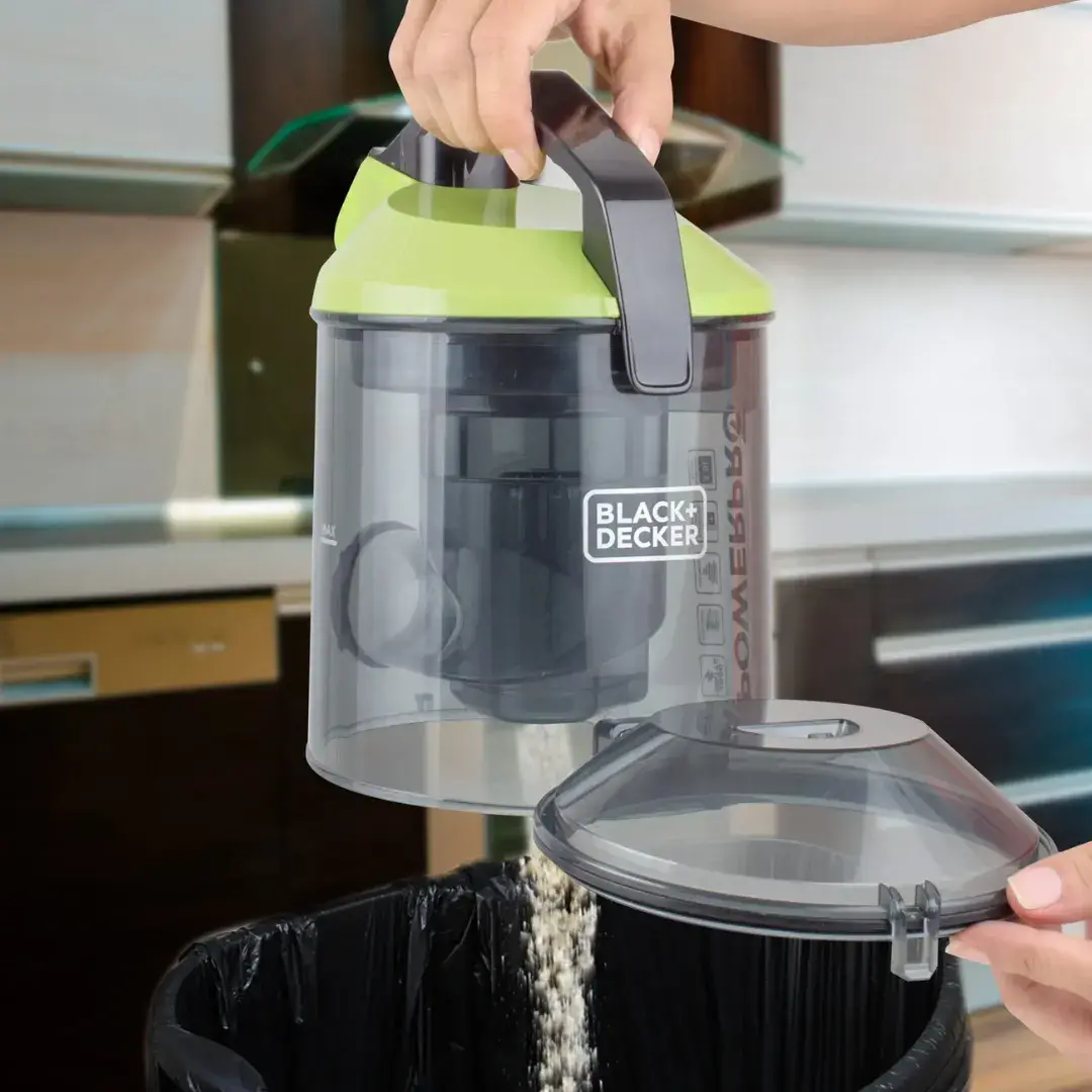 La Aspiradora Black and Decker VCBD8530 cuenta con un recipiente de plástico lavable de 2.5 litros, lo que facilita su limpieza y evita gastos adicionales en bolsas desechables. Además, su indicador de polvo te avisa cuando el recolector está lleno, aportando comodidad y practicidad en cada uso.