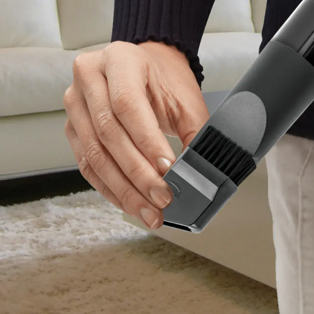 Su diseño pensado para el día a día incluye ruedas de goma que protegen los pisos y permiten un desplazamiento suave, un cable retráctil para un almacenamiento ordenado y un cepillo 2 en 1 diseñado tanto para pisos duros como alfombras, ofreciendo versatilidad en la limpieza del hogar.