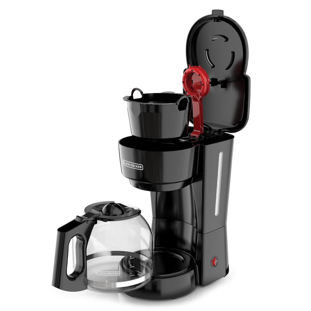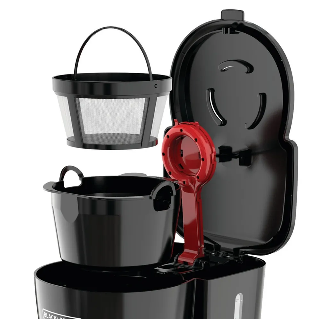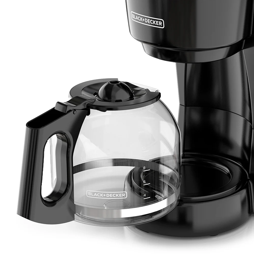 La Cafetera Black + Decker CM0915BK-LA prepara 12 tazas con jarra de vidrio, filtro permanente y función de pausa para servir. Diseño moderno y apagado automático.