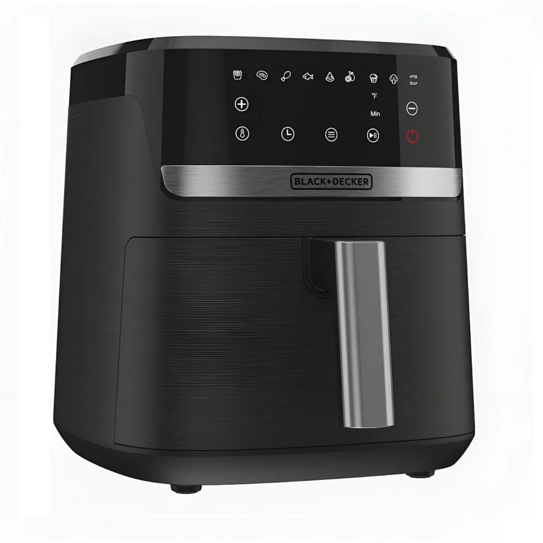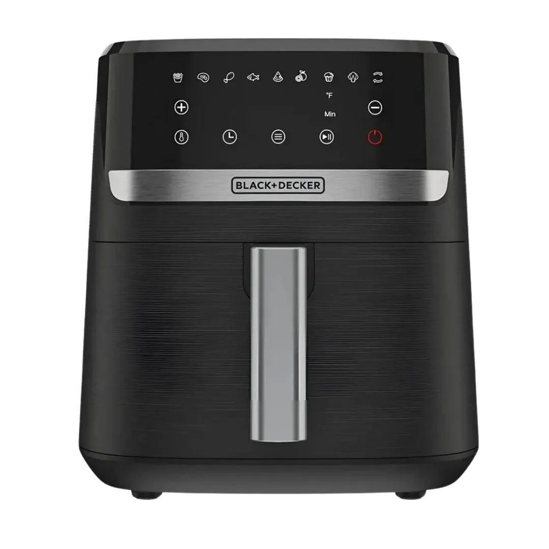 La Freidora de Aire Black + Decker AFBD62-1BDLA Purifry ofrece un diseño moderno con gran capacidad y funciones inteligentes para que disfrutes de tus comidas favoritas de forma más saludable. Su tecnología de aire caliente permite cocinar con poco o nada de aceite, reduciendo significativamente la grasa sin perder el sabor ni la textura crujiente.