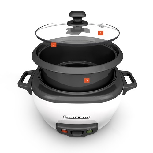 La Olla Arrocera Black + Decker RC503 es ideal para familias pequeñas. Con capacidad de 3 tazas crudas, función automática de mantener caliente y recipiente antiadherente removible, ofrece practicidad y resultados perfectos en cada preparación.